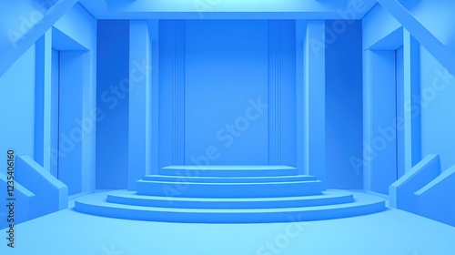 © chesleatsz, Fototapeta premium Abstract Blue Room With Circular Steps And Elevators