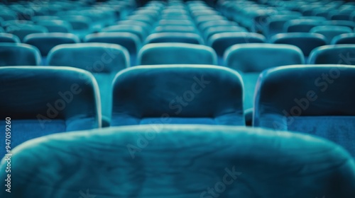 © Iswanto, Fototapeta premium Abstract blue seats in a row.