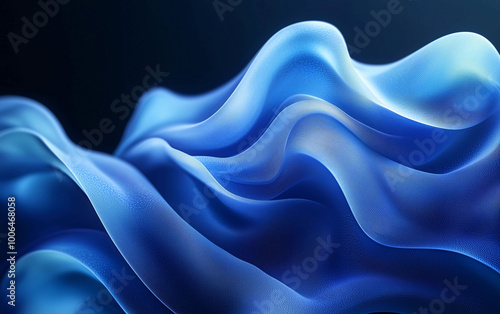 © Sunny, Fototapeta premium Abstract Blue Shape with Fluid Curves and Volumetric Lighting on Dark Background in Monochromatic Green Palette. High-Resolution, Sharp Focus Studio Design.