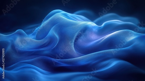 © muhammad, Obraz premium Abstract Blue Silk Waves: A Serene Digital Art Piece