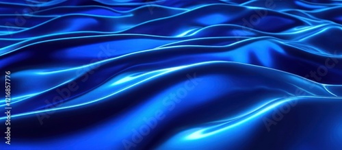 © @_ greta, Obraz premium Abstract Blue Silk Waves: A Serene Digital Artwork