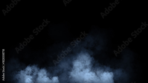 © Victor, Naklejka premium Abstract blue smoke, fog on isolated black background, creating a mysterious and backdrop, creating a dreamy, atmospheric effect for artistic