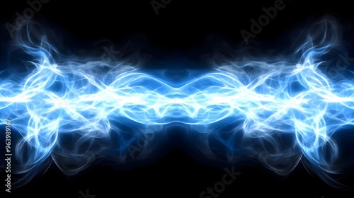 © fledermausstudio, Obraz premium Abstract Blue Smoke Waves on Black Background