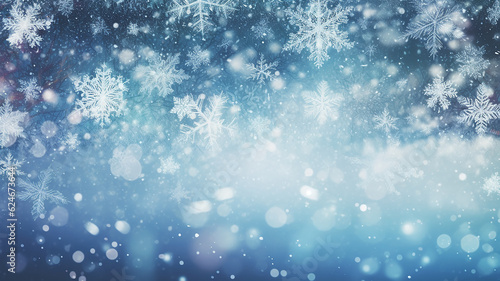 © kichigin19, Fototapeta premium abstract blue snowflakes falling winter weather blurred background. Generative AI