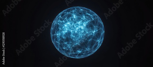 © r tech, Obraz premium Abstract Blue Sphere with Glowing Network Connection on Dark Background