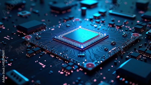 © Synthetic Stock Lab, Fototapeta premium Abstract blue square glowing dark background