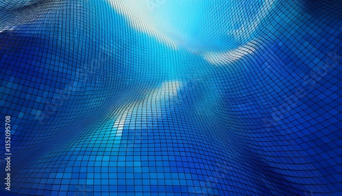 © Rendy Dastian, Obraz premium Abstract Blue Square Mosaic Background. Generated image