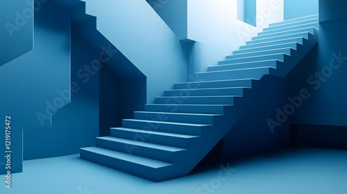 Fototapeta premium Abstract Blue Staircase Interior Design 3D Render