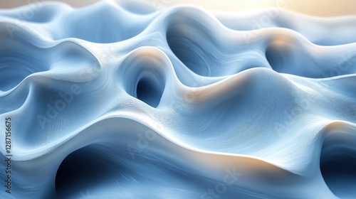 Obraz premium Abstract Blue Swirling Landscape: A Digital 3D Render of Serene, Textured Waves
