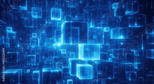Obraz premium Abstract Blue Translucent Cubes Matrix