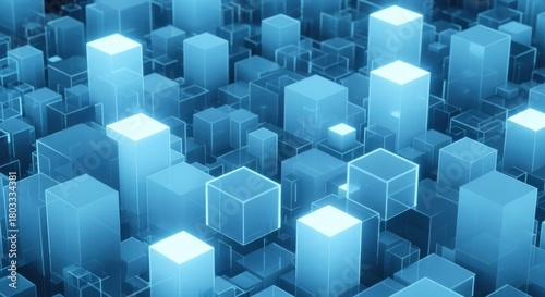 Obraz premium Abstract Blue Translucent Cubes Matrix