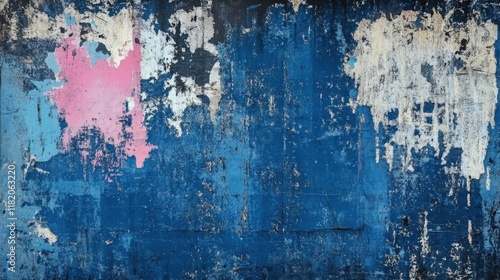 © 69, Obraz premium Abstract Blue Wall with Peeling Paint and Texture Variations
