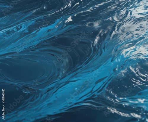 © Phennapha, Obraz premium Abstract blue water background with flowing ripples and swirls Liquid texture with dynamic movement , shiny, serene
