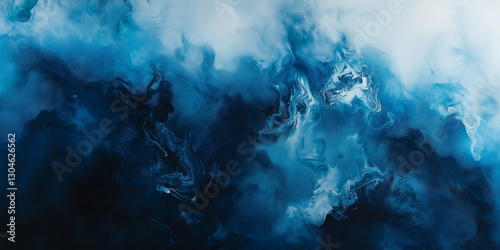 © MdJahangir, Obraz premium Abstract blue watercolor background with blurred dark blue and white colors