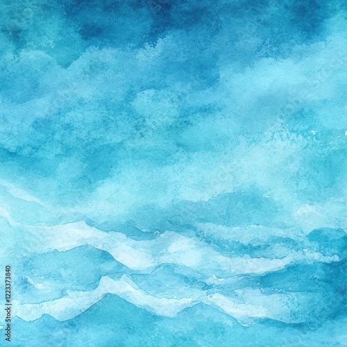 © Fenny, Fototapeta premium Abstract blue watercolor sky, ocean waves background, design texture