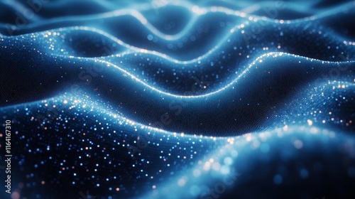 © hanif, Obraz premium Abstract blue wave background with glowing particles.