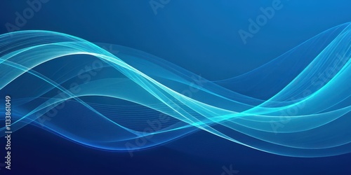 © Theerawat, Fototapeta premium Abstract Blue Wave Design Serene Curves and Flowing Lines on a Deep Blue Background