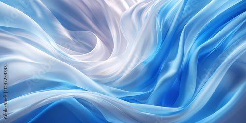 © 4CreativeWorld, Obraz premium Abstract blue wave design with flowing patterns and soft gradient hues, background