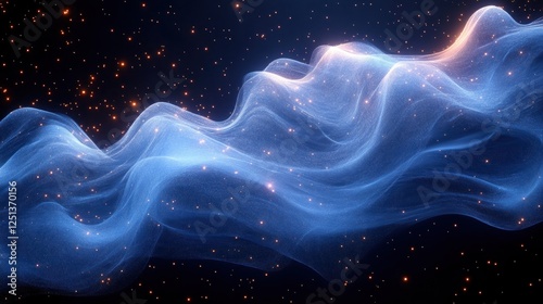 © Erisna Yolanda, Obraz premium Abstract blue wave energy, dark space background, cosmic particles, design element