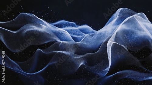 © xoan, Obraz premium Abstract blue wave energy flow, dark background, technology concept