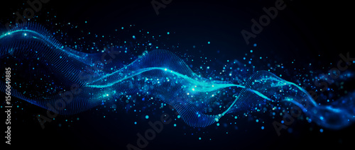 Obraz premium Abstract blue wave of particles flowing in a dark digital space with glowing...