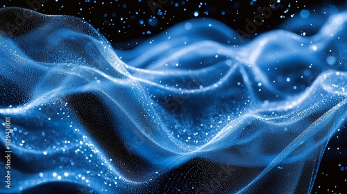 © loxia stock image, Obraz premium Abstract blue wave particle flow.