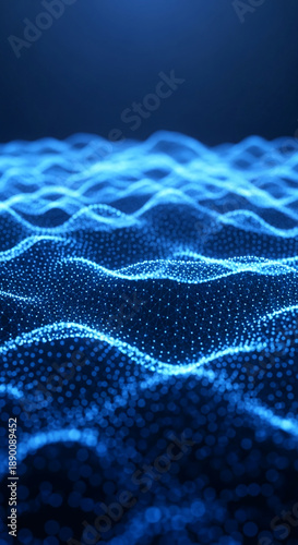 Fototapeta premium Abstract blue wave pattern, glowing particles forming undulating surface,...