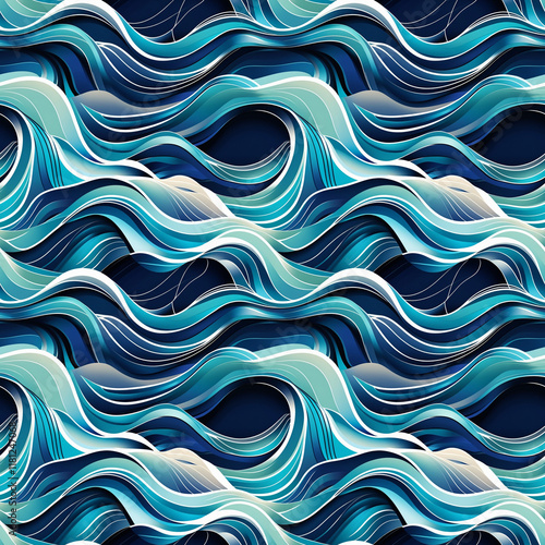 © Roman Stock studio, Obraz premium Abstract blue wave pattern on dark background