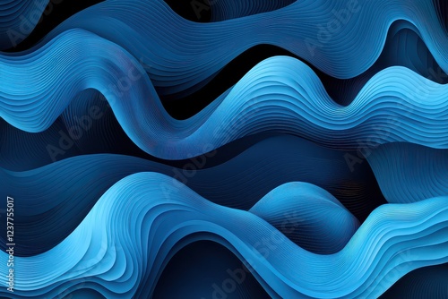 © Khatyjay, Obraz premium Abstract blue wave patterns flowing smoothly against a dark background, evoking calmness and depth