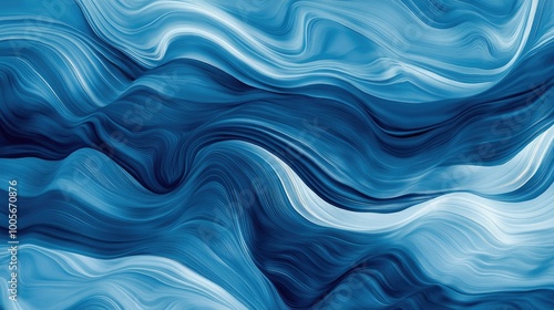 Obraz premium Abstract blue wave patterns in a horizontal layout, creating a vibrant and...