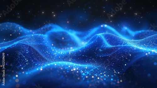 Fototapeta premium Abstract Blue Wave with Glowing Particles