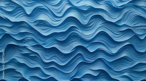© Elnare, Obraz premium Abstract blue waves background, 3D rendered, perfect for website design.