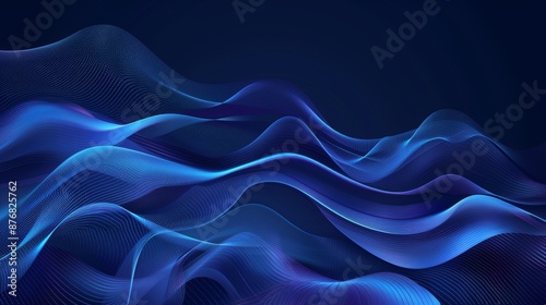 © Elkhan Babayev, Obraz premium Abstract blue waves depict a data stream concept, visualized through a vector illustration.