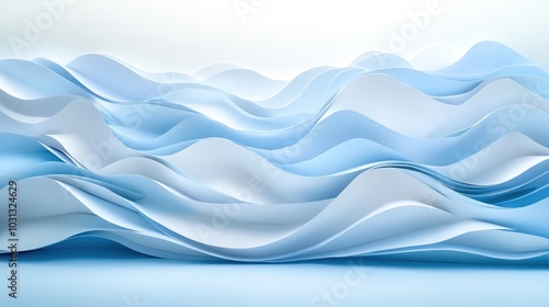 © Phirakhup, Fototapeta premium Abstract blue waves of paper art, soft curves on a white isolated background.