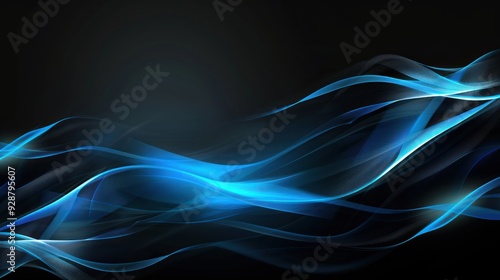 © Wi, Naklejka premium Abstract Blue Waves on Black Background