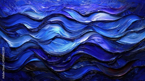 Fototapeta premium Abstract blue waves, textured paint strokes, ocean art