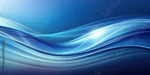© Mali, Naklejka premium Abstract Blue Waves with Glowing Lines and Smooth Curves, Flowing Dynamically on a Serene Background