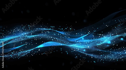 Fototapeta premium Abstract Blue Waves with Glowing Particles