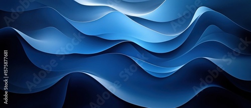 © Ketua, Obraz premium Abstract Blue Wavy Lines with Depth and Shadows