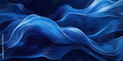 © NArts, Obraz premium Abstract Blue Wavy Lines with Glittering Background