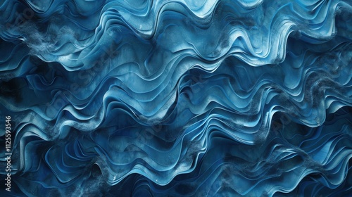 © Rika, Fototapeta premium Abstract Blue Wavy Textured Fabric Design