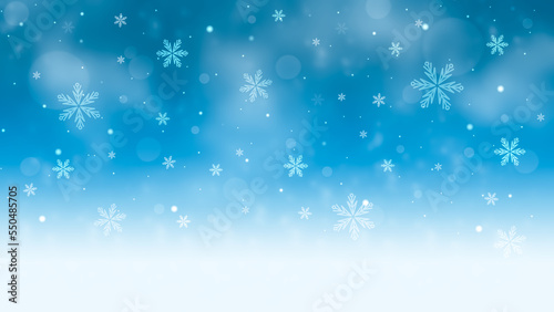Fototapeta premium Abstract blue winter background with snow and snowflakes for christmas season.