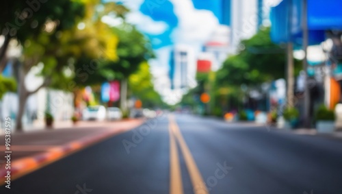 © MR.DEEN, Fototapeta premium Abstract blur empty road with blurry trees and building background