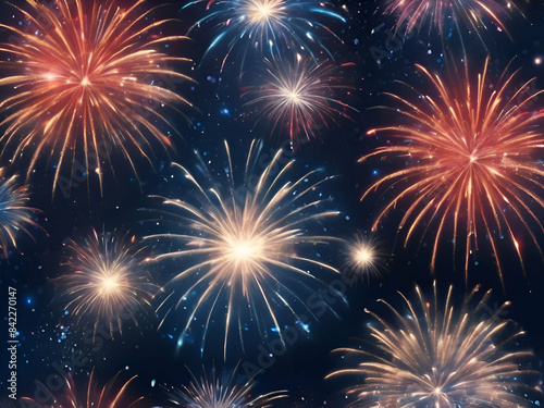 © rutchakon, Naklejka premium abstract blur Glitter Sparkle Fireworks Abstract Defocused Glittering Independence Day Background