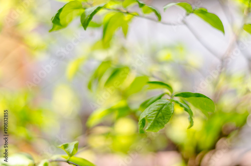 Obraz premium abstract blur green and yellow leaf on the autumn time