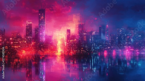 © M Yaqoob, Fototapeta premium Abstract blur lights in the night in panoramic view.