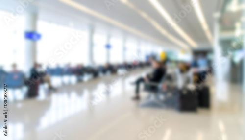 © dedikw, Fototapeta premium Abstract blurred background of airport departure terminal with waiting passengers.