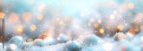 © K'kriang Krai, Obraz premium Abstract blurred background with snow and bokeh lights, in pastel colors.