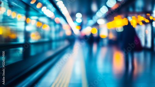 © Tahsin, Fototapeta premium Abstract Blurred Cityscape Night Lights Urban Background Blue Dark Glow Bokeh Photo Image Speed