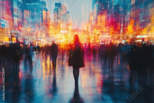 © Vesna, Obraz premium abstract blurred defocused tradeshow event capturing the energy and excitement of a business convention with attendees engaging in technology discussions and networking opportunities